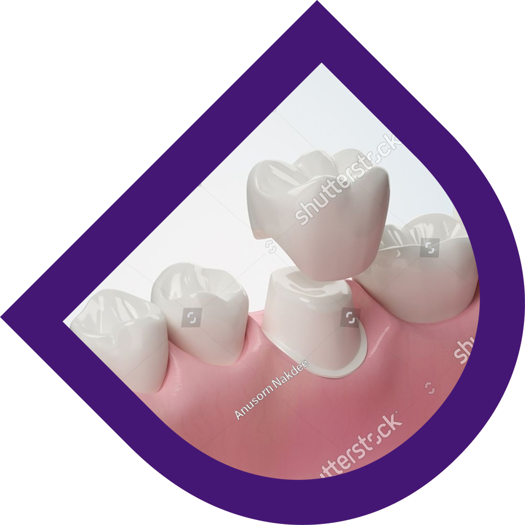 A crown is a tooth-shaped cap that completely covers a damaged tooth to restore its strength, shape and function.